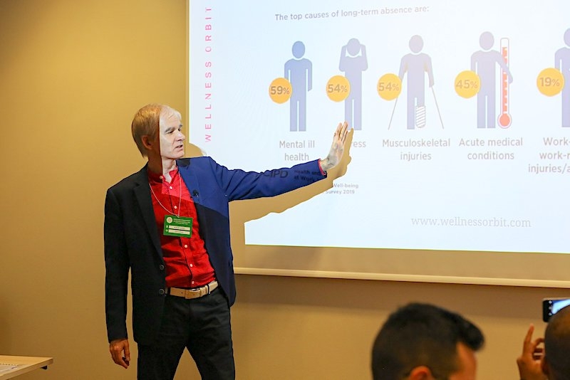 Kaur Lass introducing the proactive mental wellness approach to NHS 04/2019. Photo: Andrew Whitfield